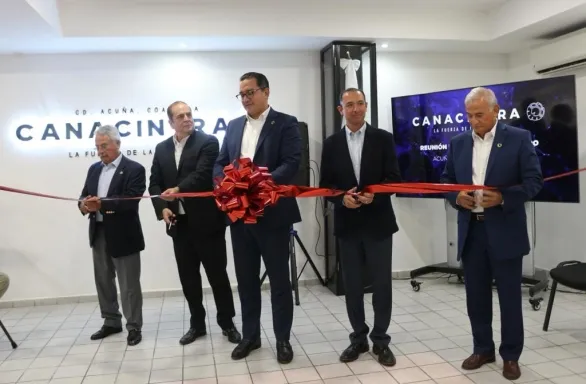 El secretario de Economía de Coahuila, Claudio Bres Garza, inauguró el edificio remodelado de la Cámara Nacional de la Industria de la Transformación, delegación Acuña,
