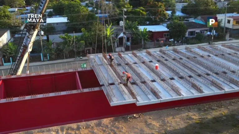 México 27 diciembre._ En el Tren Maya comenzó el montaje de prelosas sobre las dovelas del viaducto elevado por el cual cruzará la ciudad de