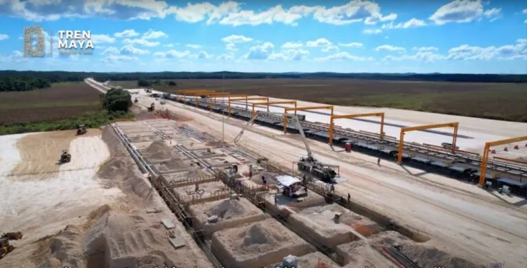 México 6 diciembre.- Los trabajos de construcción del Tren Maya avanzan en las estaciones Villa El Triunfo, en Balancán, Tabasco, y Edzná, en Campeche, junto