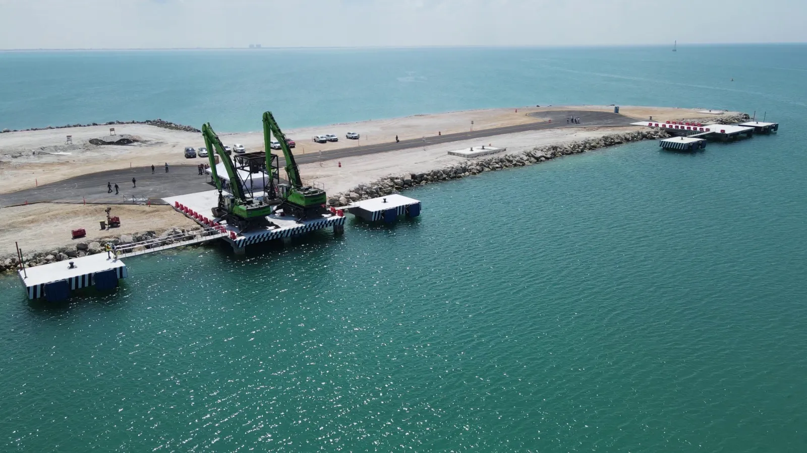 Los cuatro duques de alba en el Muelle Beacon de Puerto Progreso aumentan la capacidad del muelle y agilizan el arribo y desembarco de balasto y otros insumos para la obra del Tren Maya, destacó May Rodríguez al presentar el informe integral del tramo 3 en la conferencia de prensa del presidente Andrés Manuel López Obrador.