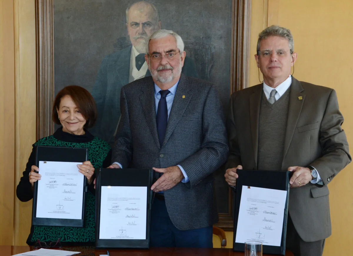 El rector Enrique Graue Wiechers signó la carta de intención con Margarita Fernández Rivera Río, viuda de Luis Arnal Simón, quien fuera destacado profesor del Programa de Maestría y Doctorado en Arquitectura de esta casa de estudios; así como con el director de la FA, Juan Ignacio del Cueto Ruiz-Funes. En la ceremonia estuvo también el profesor emérito de la UNAM, Xavier Cortés Rocha.