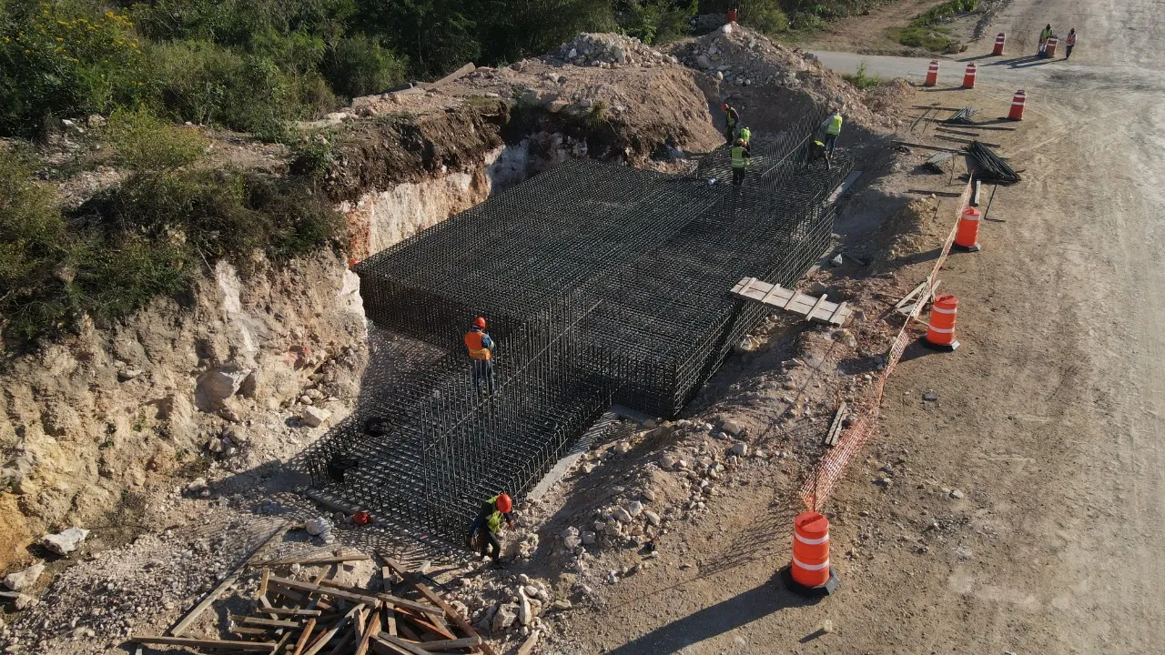 En el Tramo 3 (Calkiní-Izamal) avanza la construcción de pasos vehiculares, como en Becal, Campeche, donde se conforma la superficie de rodamiento por donde pasarán los vehículos, al tiempo que, en Maxcanú, Yucatán, se ejecuta la etapa de cimentación.