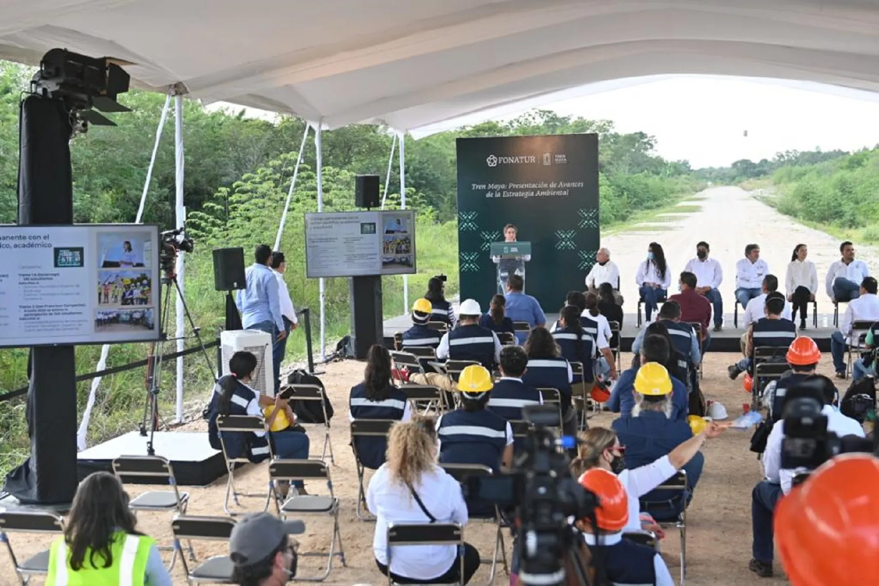 El director general del Fondo Nacional de Fomento al Turismo (Fonatur), Rogelio Jiménez Pons, presentó en la obra del Tramo 1 los avances de la estrategia medioambiental del proyecto Tren Maya, entre los que destacan el avance de estudios y autorizaciones ambientales, pasos de fauna, inversión en la conservación de áreas naturales protegidas, entre otros.