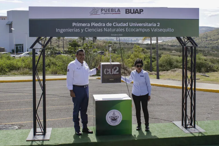 La construcción de Ciudad Universitaria 2 (CU2) es una realidad con la colocación de la primera piedra en el Ecocampus Valsequillo. La Rectora María Lilia