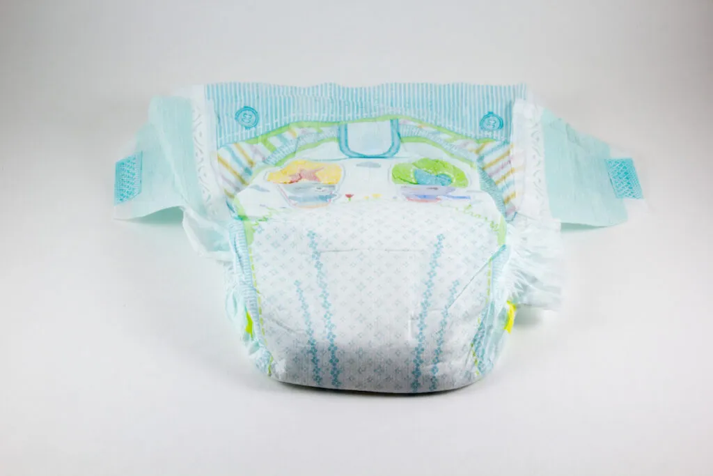 Los pañales desechables suelen fabricarse con pulpa de madera, algodón, rayón viscosa y plásticos como poliéster, polietileno y polipropileno, y la mayoría se eliminan en vertederos o mediante incineración.